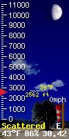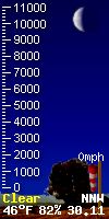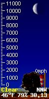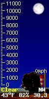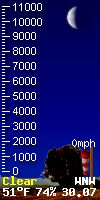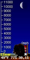 You can always see where the sun and moon are located in the world in 'degrees' by referring to "Sun El" & "Moon EL" (EL refers to elevation) data as it relates to our local position in the world. The number is positive when the sun or moon is up in our local sky, and negative when they are tracking below the horizon. In this way you can always see the location of the sun and moon in the world as it relates to our local Placerville, CA. location. The Zenith parameter refers to the time of day the sun is at its highest postition in the sky. 'Sun AZ' refers to the sun's azimuth. 'Illimination %' is the current illumination of the moon. The current phase of the moon is shown in the moon graphic.