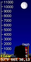 You can always see where the sun and moon are located in the world in 'degrees' by referring to "Sun El" & "Moon EL" (EL refers to elevation) data as it relates to our local position in the world. The number is positive when the sun or moon is up in our local sky, and negative when they are tracking below the horizon. In this way you can always see the location of the sun and moon in the world as it relates to our local Placerville, CA. location. The Zenith parameter refers to the time of day the sun is at its highest postition in the sky. 'Sun AZ' refers to the sun's azimuth. 'Illimination %' is the current illumination of the moon. The current phase of the moon is shown in the moon graphic.