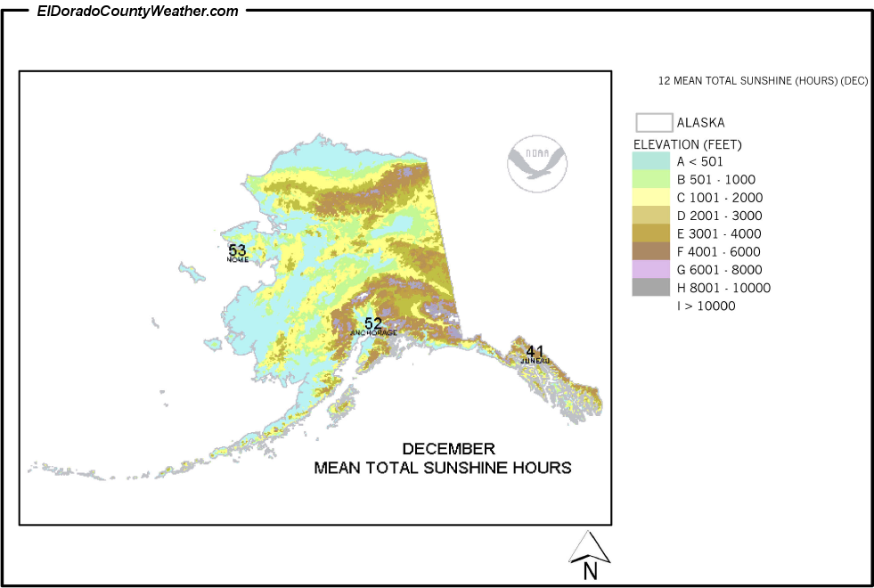 Alaska Mean Total Sunshine Hours