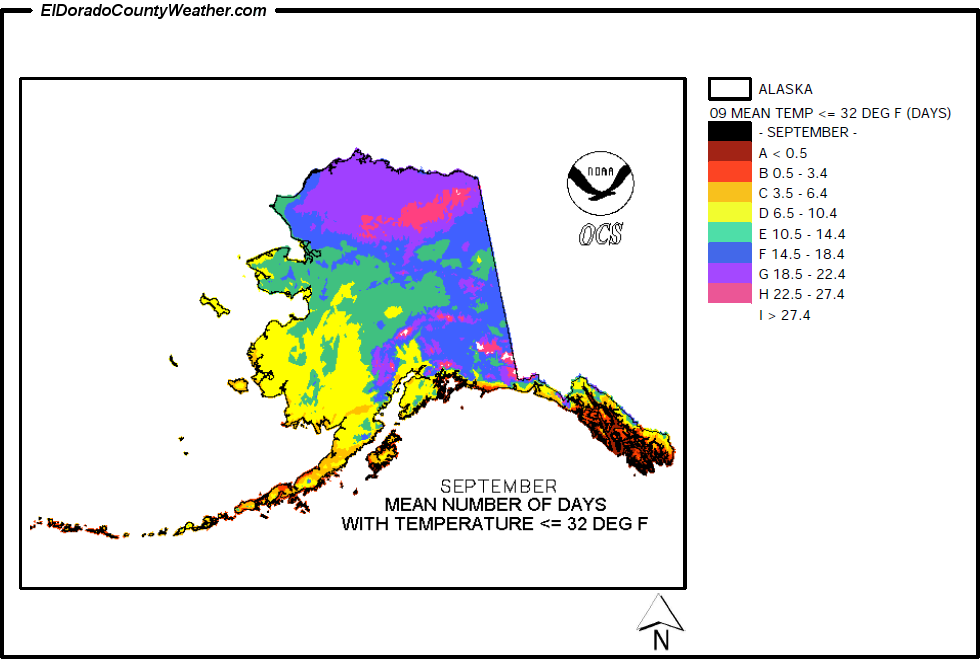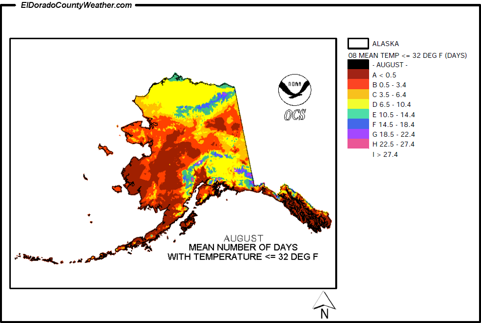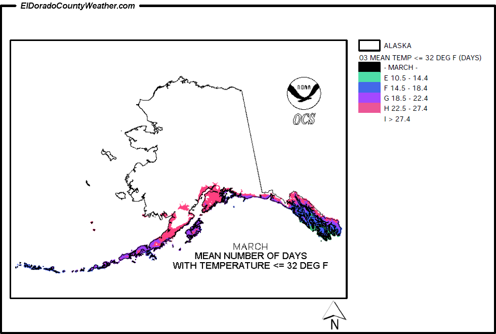 Mean Number of Days Temperatures are < or = to 32°F