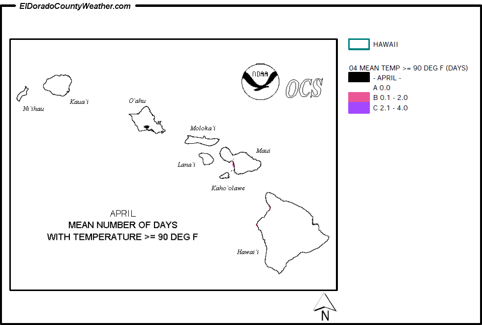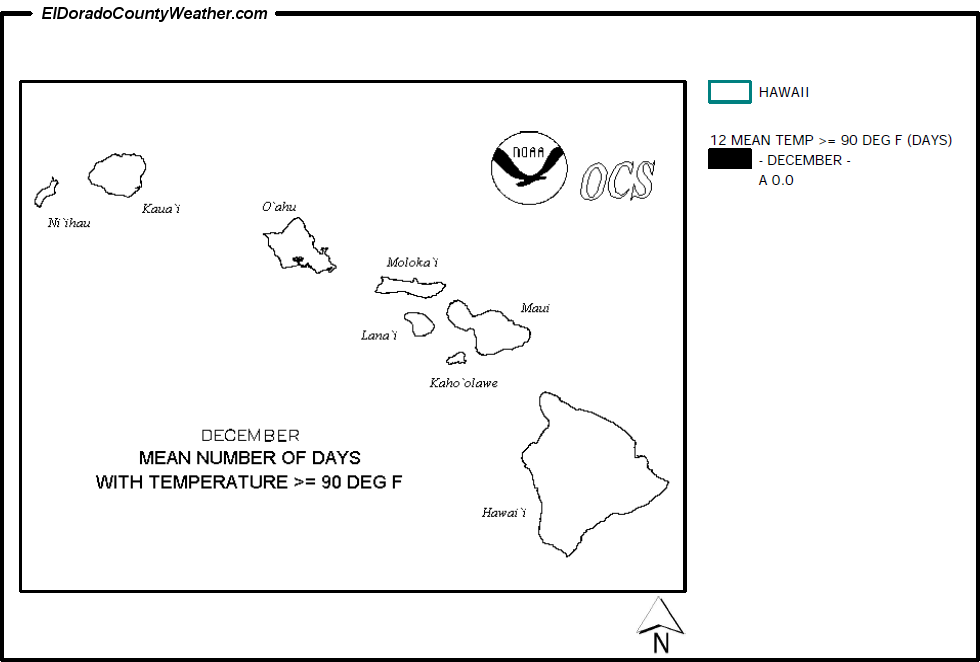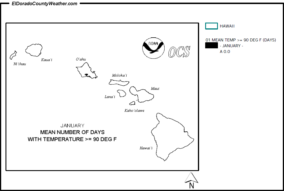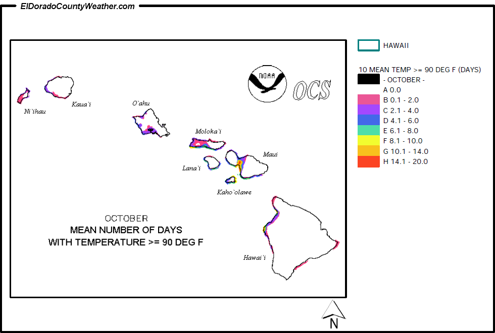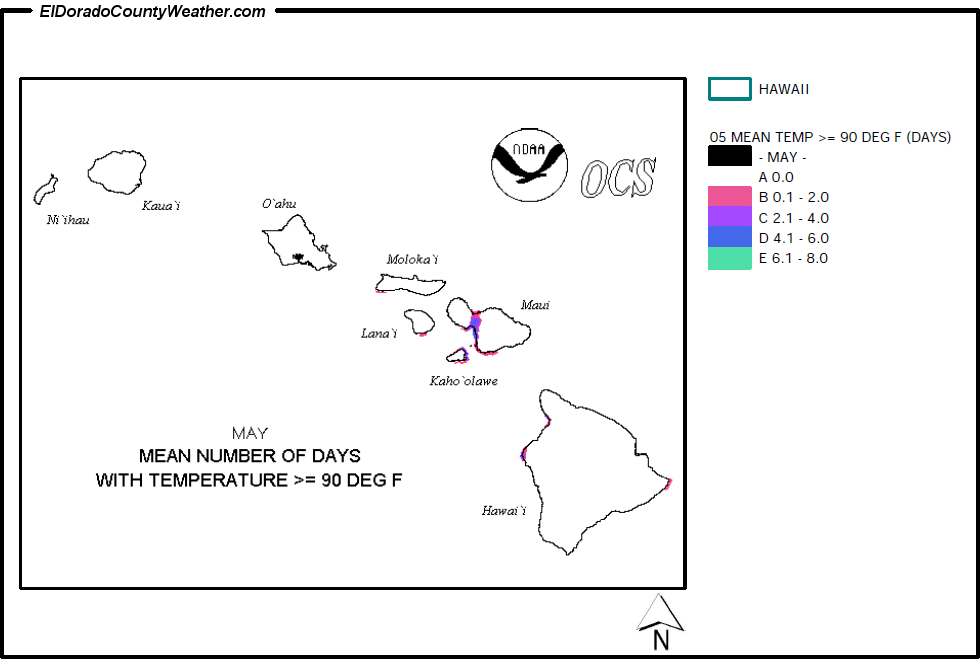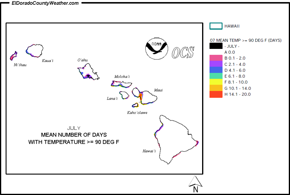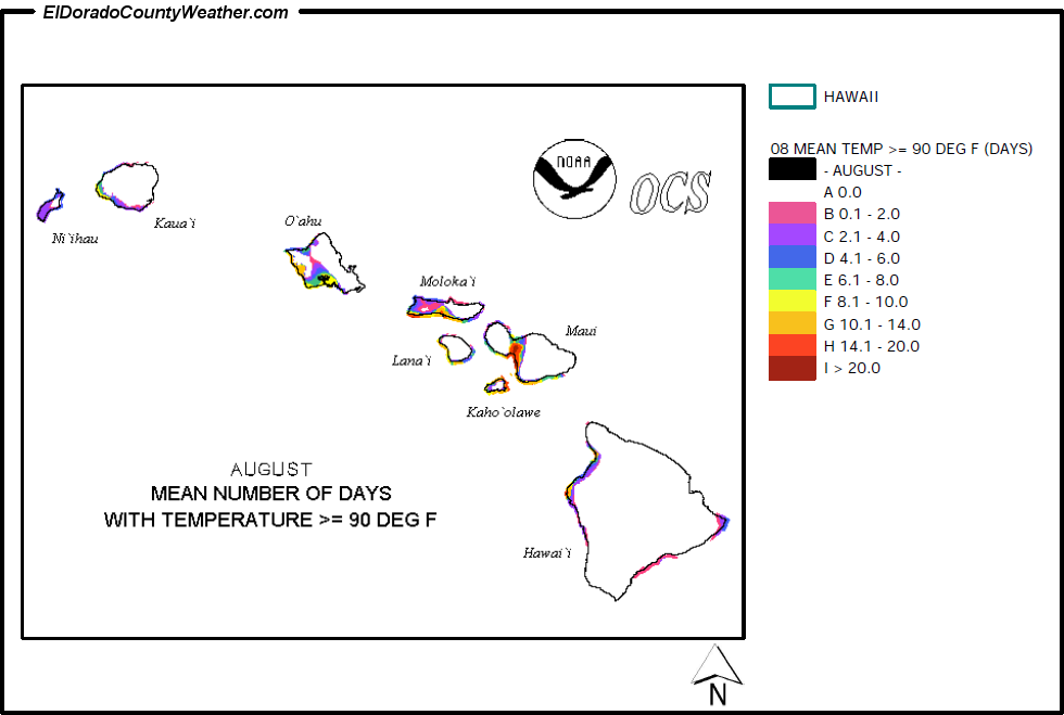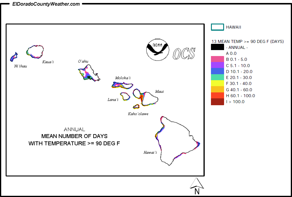 Hawaii Mean Number of Days Temperatures are > or = to 90°F