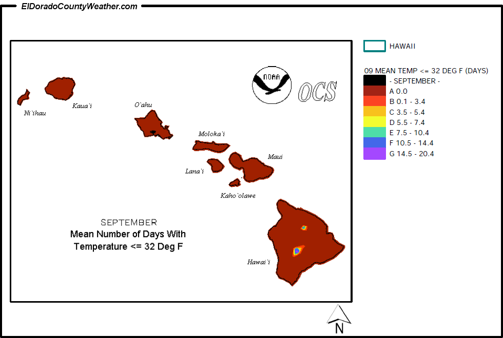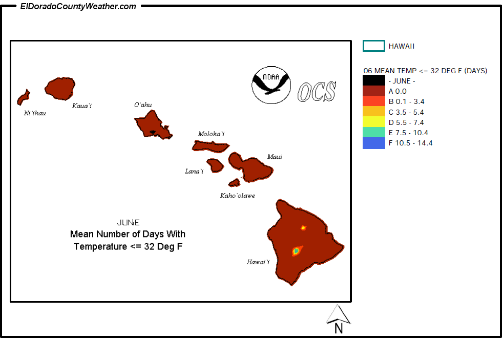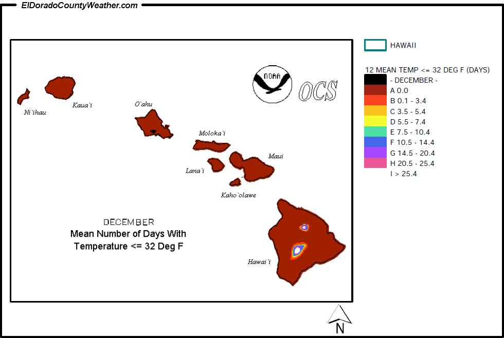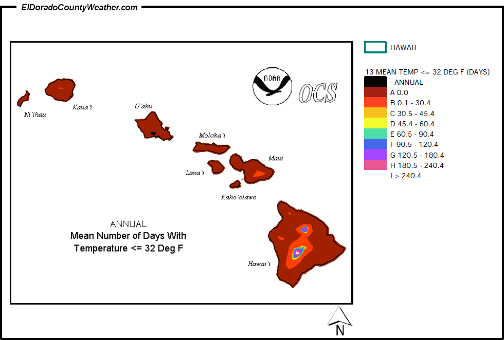 Hawaii Mean Number of Days Temperatures are Less Than or Equal to 32°F