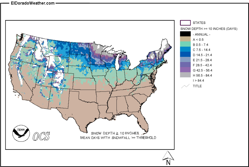 Mean Number of Days with Snow Depth > or = to 10.0 inches