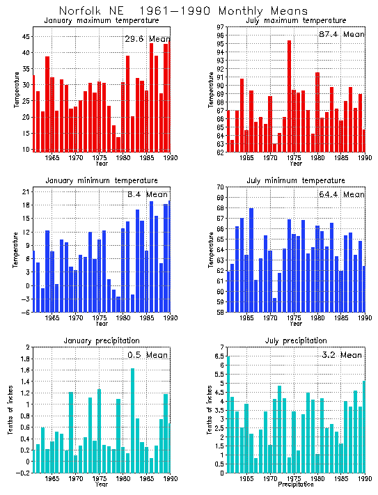 Maximum temperature 1961 to 1990: 107 F Minimum temperature 1961 to 1990: -30 F