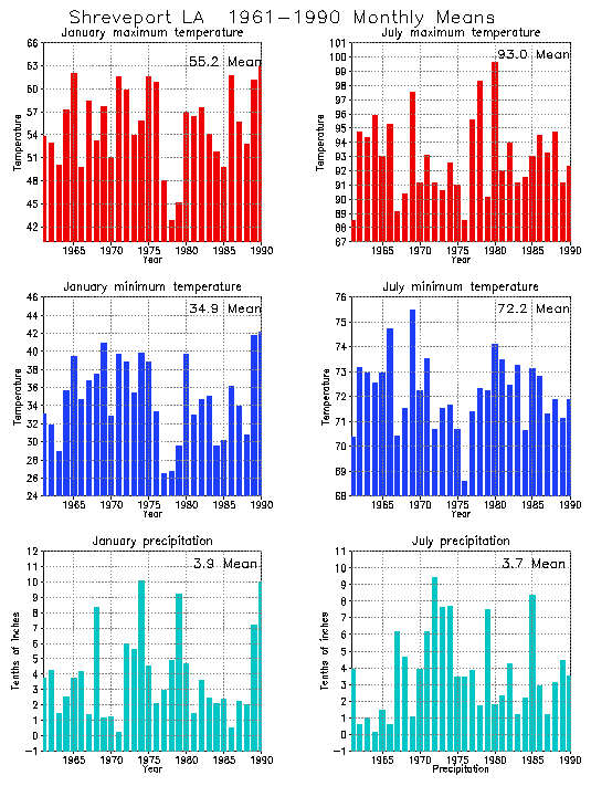 Climatology for Shreveport LA